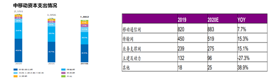中國移動2020年資本開支計劃為人民幣1798億元,同比2019年資本支出大幅提高了8.38%;中國電信2020年計劃資本支出達850億,同比大幅提高9.6%;中國聯(lián)通2020年計劃資本支出達700億,同比大幅提高24.07%。可以從以上數(shù)據(jù)看出,隨著5G牌照的發(fā)放,中國的5G建設(shè)將會延續(xù)4G建設(shè)的周期和強度,在未來的3-5年內(nèi),以新基建中骨干力量的姿態(tài),撐起中國經(jīng)濟和中國電子信息行業(yè)的一面大旗。