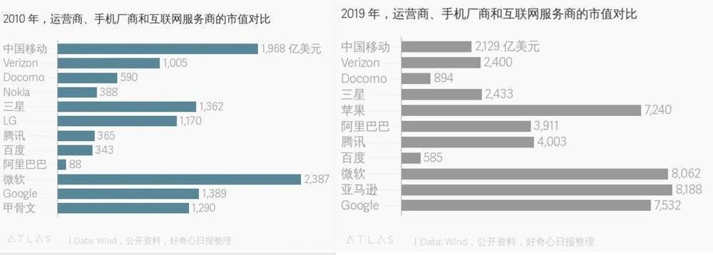 移動(dòng)通信產(chǎn)業(yè)本來(lái)就是一條很巨大的食物鏈,成份相當(dāng)復(fù)雜,自智能手機(jī)出現(xiàn)后,整個(gè)移動(dòng)產(chǎn)業(yè)鏈更出現(xiàn)大洗牌。從上圖可見,下游互聯(lián)網(wǎng)(Google)和手機(jī)終端產(chǎn)業(yè)(蘋果)都在輕松吃肉,而上游的運(yùn)營(yíng)商(中國(guó)移動(dòng))和網(wǎng)絡(luò)基礎(chǔ)設(shè)備產(chǎn)業(yè)(諾基亞)只能辛苦地啃骨頭。