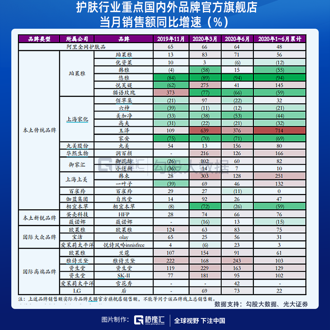 目前在國內(nèi)市場份額TOP10的國際大牌中,有半數(shù)品牌的主營業(yè)務(wù)都集中在大眾護(hù)膚品/化妝品領(lǐng)域,比如寶潔的OLAY、愛茉莉太平洋的悅詩風(fēng)吟、以及資生堂的歐珀萊和泊美等。如下圖,光大證券整理的數(shù)據(jù)顯示,在大眾化妝品市場上,國際大牌的表現(xiàn)并不不輸國產(chǎn)品牌。